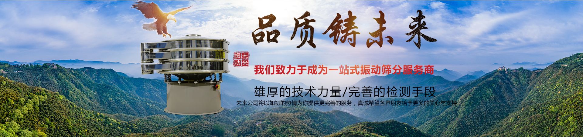 完美品質(zhì)鑄就未來 新鄉(xiāng)市未來振動(dòng)設(shè)備有限公司**生產(chǎn)標(biāo)準(zhǔn)多層振動(dòng)篩,陶瓷泥漿專用振動(dòng)篩,面粉專用篩分機(jī),淀粉專用振動(dòng)篩,超聲波振動(dòng)篩,超靜音振動(dòng)篩等等振動(dòng)篩及其配套用振動(dòng)電機(jī),設(shè)備配件?! ∥磥砉臼巧a(chǎn)振動(dòng)篩分設(shè)......